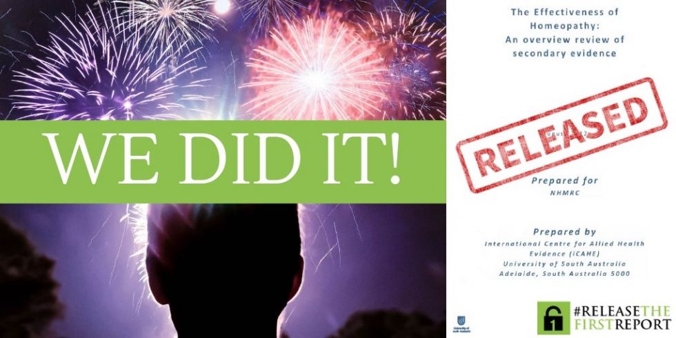 O NHMRC finalmente divulgou seu primeiro relatório(CLIQUE AQUI PARA LER O PRIMEIRO RELATÓRIO NA ÍNTEGRA) sobre homeopatia, após uma resposta esmagadora à campanha do Release The First Report, que viu mais de 75.000 pessoas de todo o mundo exigirem sua publicação.