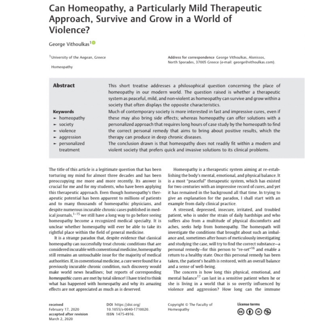FONTE: Vithoulkas G. Can Homeopathy, a Particularly Mild Therapeutic Approach, Survive and Grow in a World of Violence? Homeopathy. 2020 Aug;109(3):179-181.