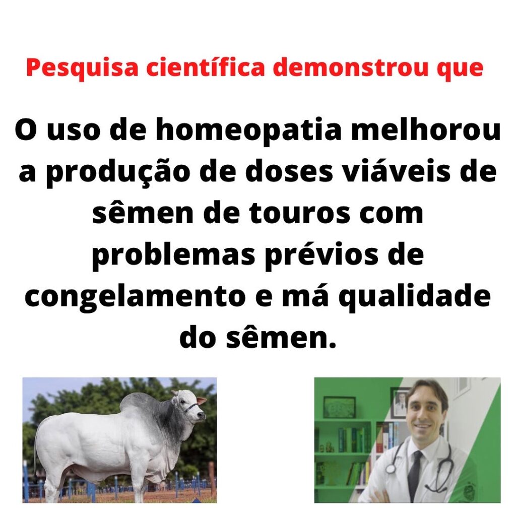 🐂 Os autores concluíram que o uso de homeopatia aparentemente melhorou a produção de doses viáveis de sêmen de touros com problemas prévios de congelamento e má qualidade do sêmen.