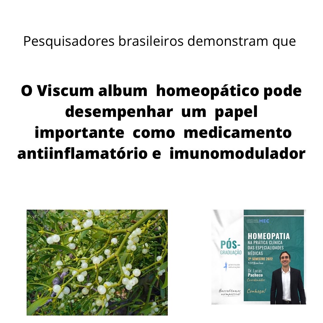 ➡️ Pesquisadoras brasileiras evidenciaram que o Viscum album homeopático nas potências D3 e 200 cH diminuíram os valores de IL-6 e IL-1b, demonstrando papel importante como medicamentos anti-inflamatórios e imunomoduladores.