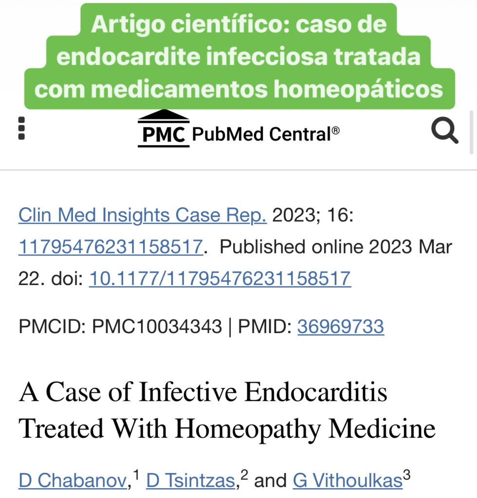 FONTE: Chabanov D, Tsintzas D, Vithoulkas G. A Case of Infective Endocarditis Treated With Homeopathy Medicine. Clin Med Insights Case Rep. 2023 Mar 22;16:11795476231158517. doi: 10.1177/11795476231158517. PMID: 36969733; PMCID: PMC10034343.